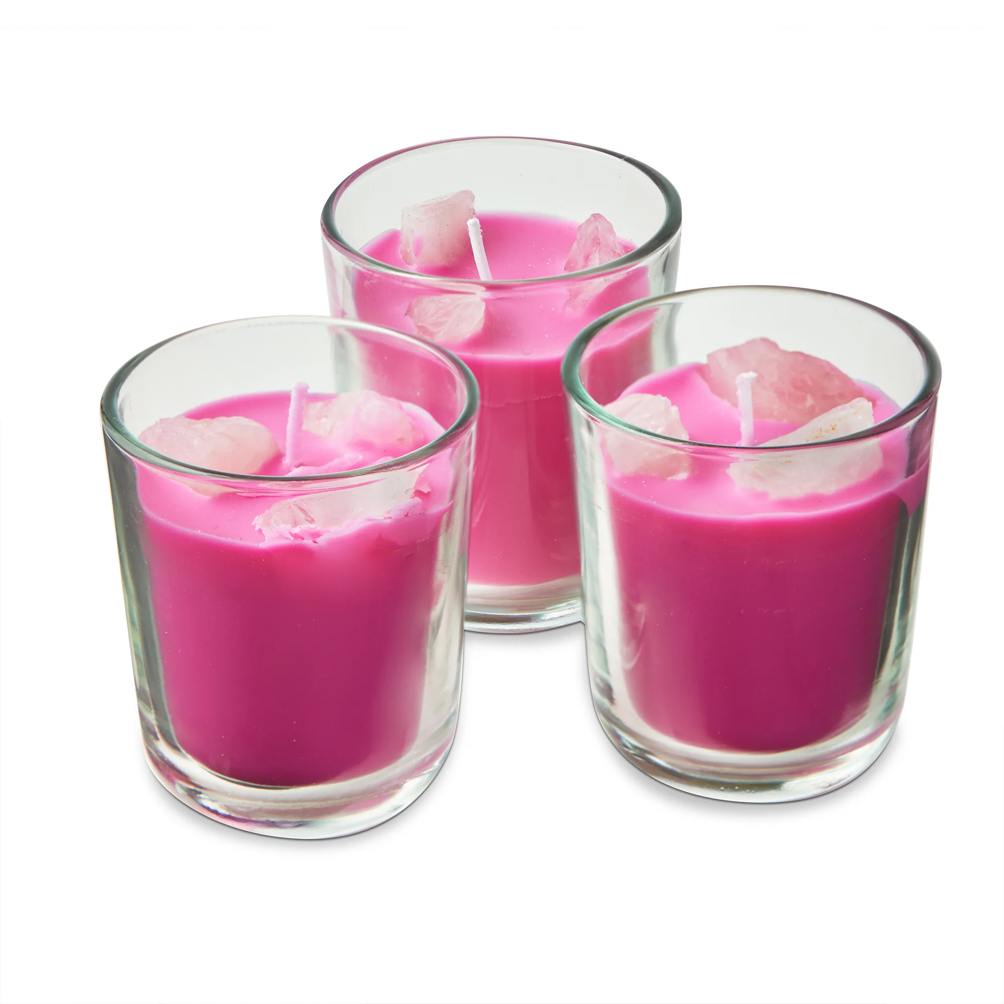Scented Votive With Rose Quartz Stones Set Of 3